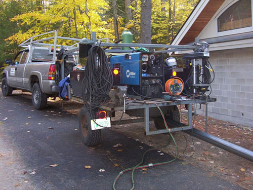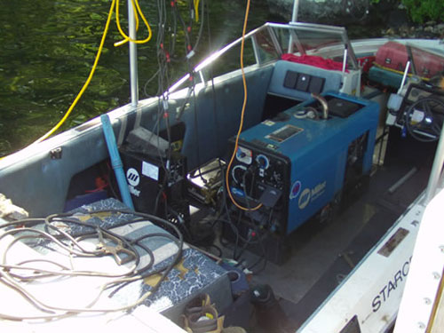 On call 24/7. Capability for welding, fabricating, welding & repair work all done portable/on your site. Will work on the islands, lakes or the side of a ski slope, working in all seasons and conditions. We have scuba gear, and can do underwater work. Also remote land sites accessible by 4 wheel drive work truck. Repairing aluminum pontoons and lower units with MIG & TIG welding.